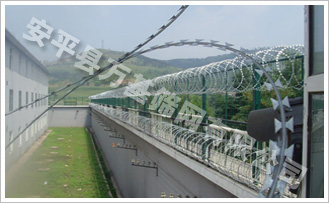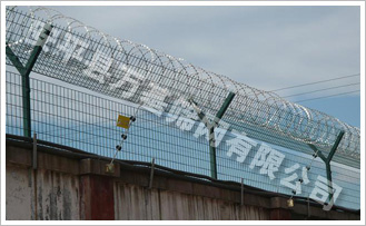监狱护栏网称监狱护栏网又监狱防护网或监狱隔离栅,主要是采用高强度的刀片刺网与普通防护网的结合,由V型支架立拄,加强型焊接片网,安全防盗连接件和刀片刺网组成.刀片刺网是一种新型防护网,由锐利尖角镀锌钢板或不锈钢薄板做刀片,钢丝做芯线组合而成的防护器材. 监狱防护网刀片刺网具有吓阻、防翻越等效果,材质坚硬,高强度,高张力,造型设计独特,不宜触摸,因而能达到极好的防护隔离效果.监狱护栏网还具有施工简便,经济实用等优点. 产品特点:监狱防护网具有防腐、防老化、抗晒、耐候等特点。螺旋型交叉刀片刺网是在两条刀片刺网之间以不锈钢片和镀锌钢片强力夹扣,展开后即呈交叉状,美观又实用。 监狱护栏网防腐形式:电镀、热镀、喷塑、浸塑。 主要用途:监狱护栏网主要用于监狱、哨所、边防、围禁区域、军事防御防护等高危险地区的防护。监狱护栏网规格型号可根据需要加工订做。产品优点: 1、监狱防护网美观实用,方便运输和安装 2、监狱防护网地形适应性强,与立柱连接位随地面起伏可上下调整; 3、监狱防护网横向四道折弯加强筋,在整体成本增加不多的同时,使网面强度和美感显著增加,是目前国内外最受欢迎的隔离网之一。 4、监狱防护网防攀爬能力极强、加强网片增加了其被破坏的程度、使用时间长、坚固耐用。 |  | | 监狱护栏网-1 | 监狱护栏网-2 |  | | | 监狱护栏网-3 | 监狱护栏网-4 | | | | 监狱护栏网-5 | 监狱护栏网-6 |