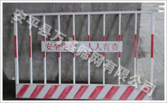 产品规格:1.2x2m,立柱1.2m高 产品用材: 立柱50*50mm*0.6-1.2mm 方管20*30mm*0.6-1.2mm 铁丝网50*50mm*3.0-4.0mm 铁板0.8mm厚 产品分类:通用版、标准版(不同版本的产品主要区别在于材料厚度的不同,使用年限不同) 产品颜色:黄黑、红白漆相间等(可根据客户要求定制) 表面处理:喷漆 产品特点:主要采用电焊连接而成,安全性能强,造型美观,具备警示醒目的有点。 适用范围:可应用于基坑临边等各种工程施工临时防护 产品用途:一般用于施工隔离、建筑施工现场临边安全防护。其灵活性极强,警示效果好,切可重复利用。
